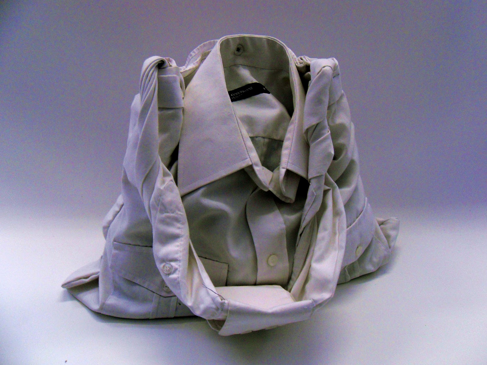 After being given a brief to make something from a white shirt, I didn’t have many ideas to begin with but after serious thought I decided to make a handbag. Although sewing is not my strongest point I tackled it in order to achieve the end product which I was pleased with, I also enjoyed the concept very much.